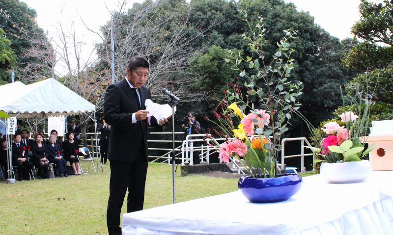 森市長は「戦争を知らない世代が増える中で、私たちは、多くの尊い犠牲を伴った戦争の悲惨な歴史を風化させることなく、次の世代に継承していく、重大な責任を負っています」、橋川遺族会長も「多くの人が最愛の家族を残し、異郷の地で亡くなり、家族の元へ帰ることができなかった。ウクライナや中東で、今なお、罪のない子どもらが犠牲になっている。戦争は人の尊厳を踏みにじる理不尽なもの。平和を心に刻み、継承することが大切です」などと述べ、それぞれ、平和を次代に伝える大切さを訴えた。