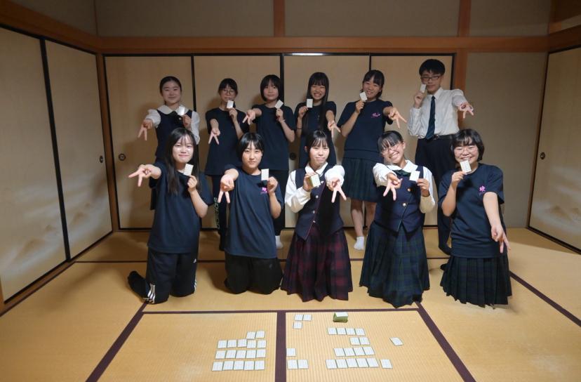 部長の半羽美結さん(3年制2年)は、小学校でかるたを体験し、関心を持った。同高に進学したのは、かるた部があったためだという。小学生の時に遊び感覚で楽しんだ「ちらし取り」とは違って、競技かるたは「おてつき」など厳しいルールがあり、最初は思うように札が取れず悔しい思いもした。努力を重ね、少しずつ札を取れるようになり、夢中になった。卒業生が訪れて華麗な札さばきを見せることがあり、大人になっても続ける姿に憧れを抱いている。