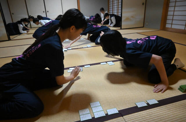 小倉百人一首の札を使って、記憶力・瞬発力・集中力・体力を駆使して札を取り合う競技かるた。暁高校(四日市市萱生町)かるた部は、高校日本一を決める全国高等学校選手権大会出場を目指し、練習に励んでいる。
