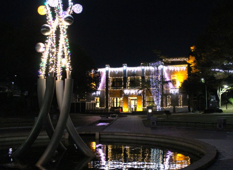 森智広市長は「このイルミネーションは毎年グレードアップしていくところがすごいです。12月になれば円形デッキも完成し、その点灯も加わります」などとあいさつした。