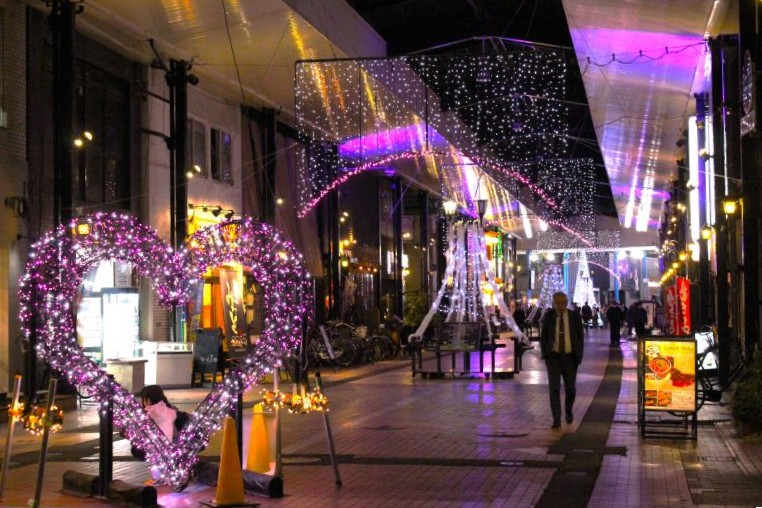 中心市街地のイルミネーションは、街のイメージアップやにぎわいづくりのほか、街を訪れる人にやすらぎを提供しようと商店街などが連携して取り組んでおり、今回で15回目になるという。この日は第11回四日市まちなかバルの開催初日でもあり、イルミネーションが華やぎを添えた。