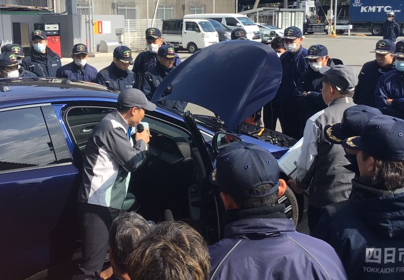 電気自動車の事故があった場合の適切な対応を学ぼうと、三重県の四日市市消防本部の隊員たちが2月12日、研修会を開いた。電気自動車に特化した研修は初めてといい、自動車会社から講師を招き、隊員たちにとって、とても参考になる内容だったという。