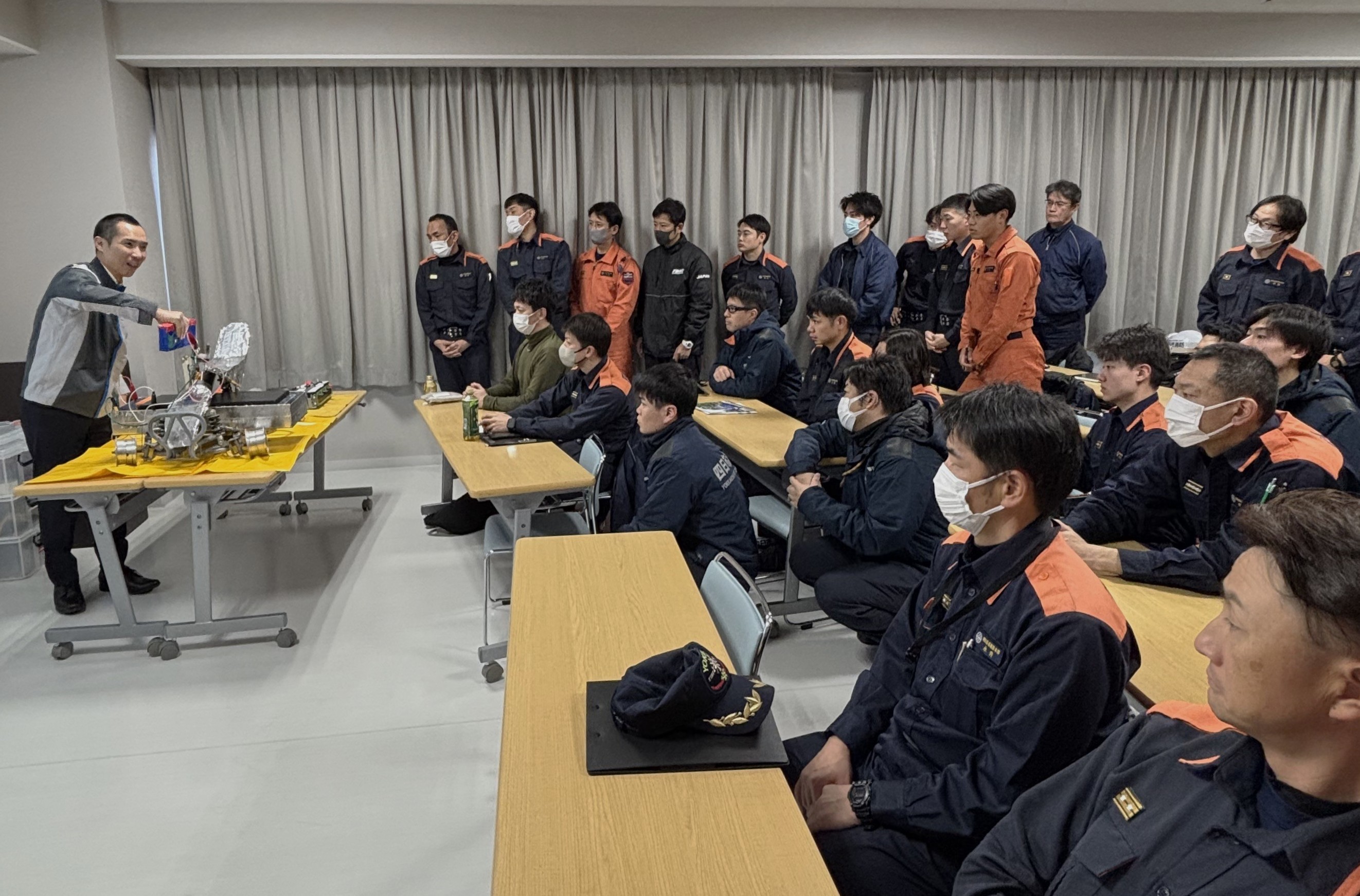 研修会場は南消防署で、各消防署から約40人の救助隊員や消防隊員が参加した。日産自動車株式会社と日産プリンス三重販売株式会社が講師派遣や電気自動車の提供で協力した。