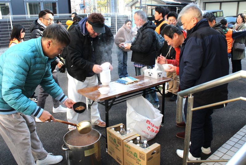 今年は、初めての試みとして、事務所前で豚汁のふるまいがあり、チェックポイントの中でもおもてなしが用意された。