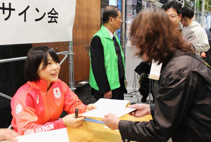 三重県四日市市の中心市街地商店街で2月22日、「お諏訪さん市」があり、近鉄四日市駅前の一番街商店街内に開設されたばかりの集客施設「ヨッカド」で、パリ五輪金メダリストのレスリング選手藤波朱理さんのトークショーとサイン会が開かれた。好きな本の紹介を競うビブリオバトル、すぐ近くではキッズダンスもあり、にぎやかな一日になった。