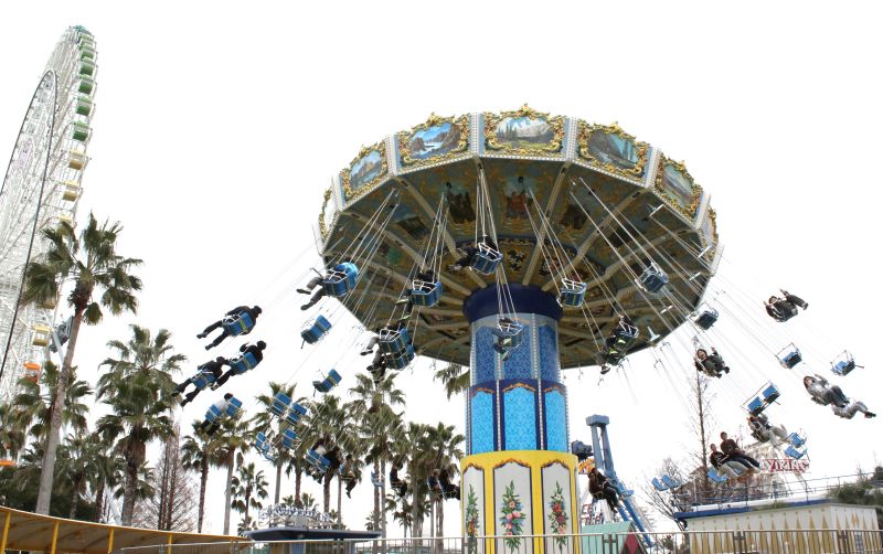 三重県桑名市のナガシマスパーランドに、回転式の空中ブランコ「ウェーブスウィンガー」が新機種で登場し、2月28日から営業運転する。報道関係者向けのプレオープンが同27日にあり、たまたま来場していた一般客も初乗りを楽しんだ。