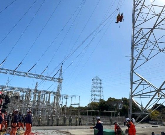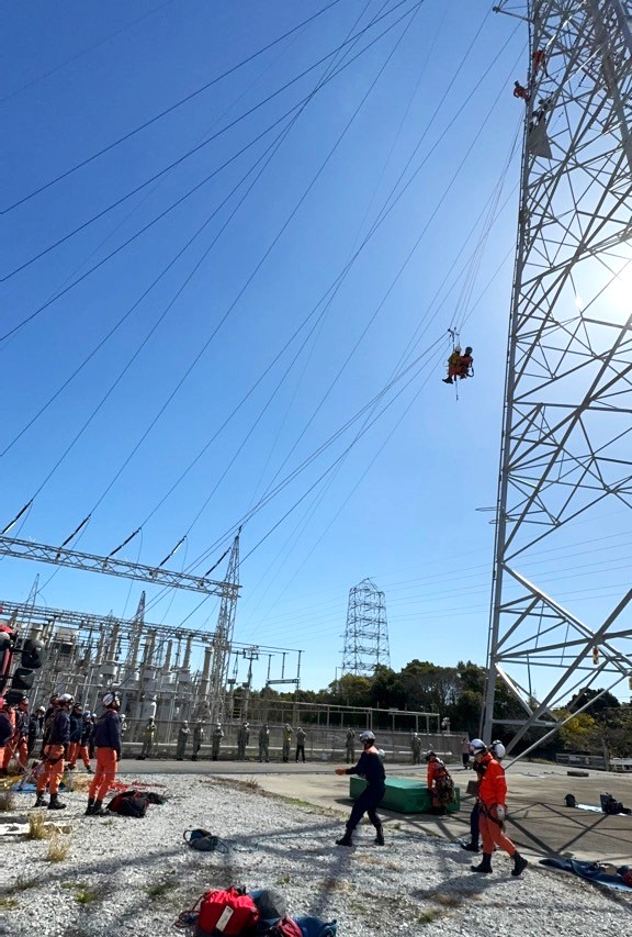 高さのある鉄塔での救助活動に備えようと、三重県の四日市市南消防署と中部電力パワーグリッド四日市支社が3月4日、合同訓練をした。電気関係設備の配置や注意点を把握し、いざという場合に安全な救助活動ができるようにとのねらいで、隊員には貴重な機会になったという。