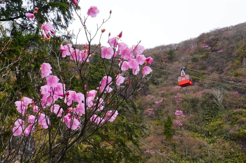 花の便りをくれた御在所ロープウエイによると、アカヤシオはツツジ科の落葉樹で、葉が芽吹く前にピンクの花を咲かせるという。御在所岳では標高600m付近から自生しており、白い鉄塔がある標高1000mから山頂にかけて多く見られるという。御在所ロープウエイの佐藤優華さんは「新緑のグラデーションが美しいシーズンになりました。アカヤシオに続いて5月にはシロヤシオ、ベニドウダン、サラサドウダンが順に咲き、6月中旬まで花の御在所岳を楽しんでいただけます」と話している。