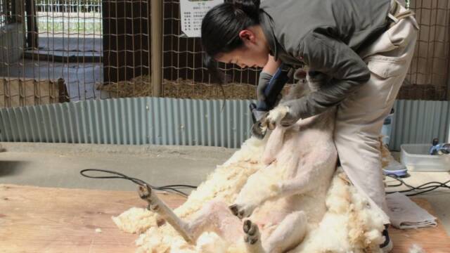 • こちらも夏に備えて衣替え、四日市の南部丘陵公園でヒツジの毛刈り